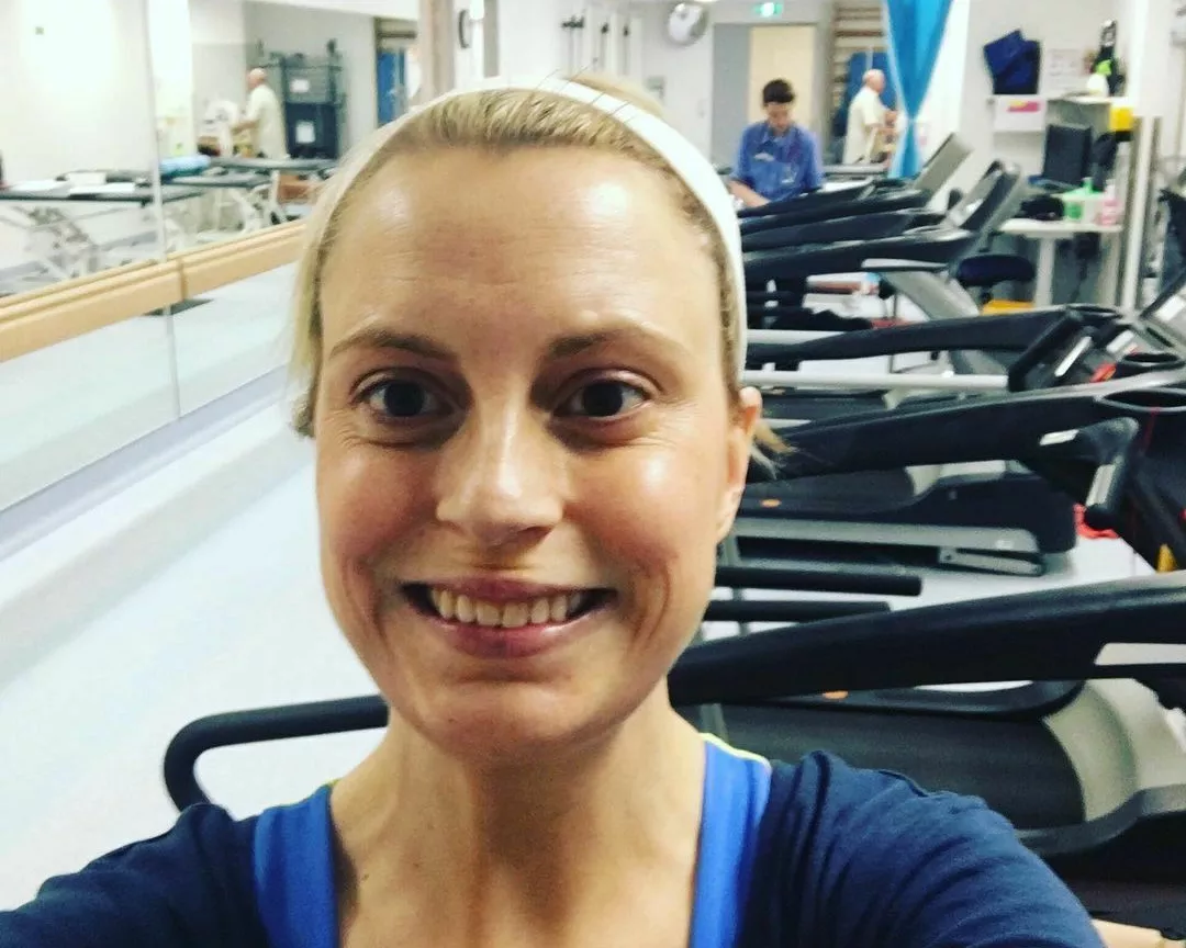 Elle in hospital and at cardiac rehab in 2016 after her fifth open heart surgery.
