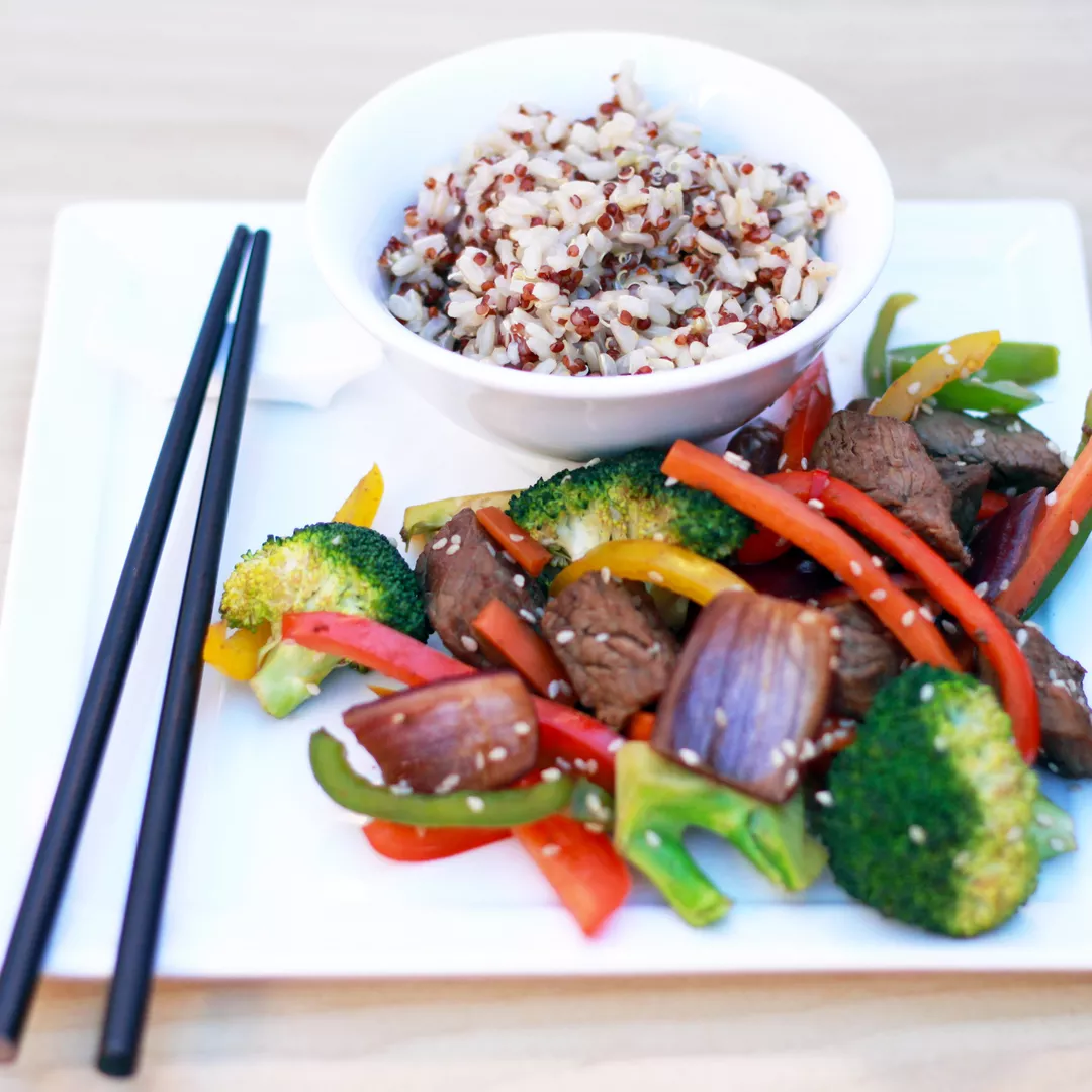 Add the carrot and broccoli and stir-fry for a further 2 minutes. Add the capsicum and continue to toss over high heat for a further 2 minutes.