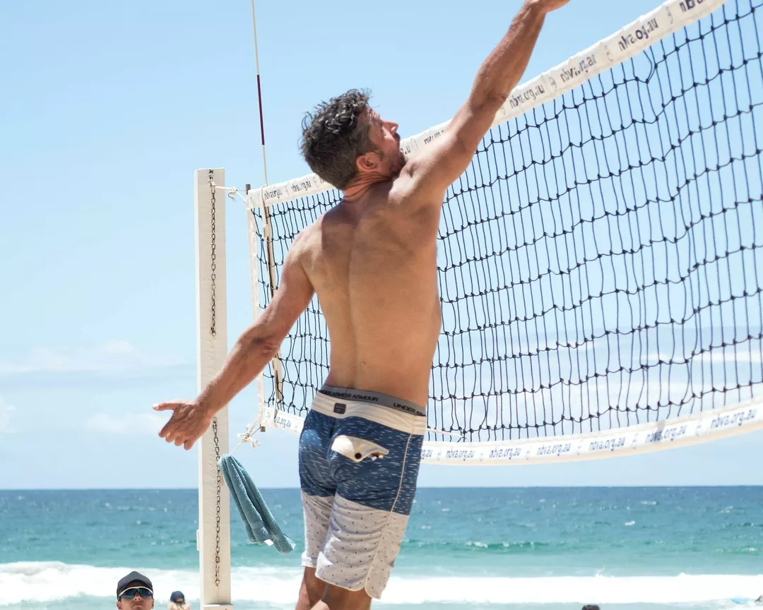 Ben has worked as a magazine writer and editor, pictured here (left) interviewing singer Vanilla Ice, and is an avid volleyball player.