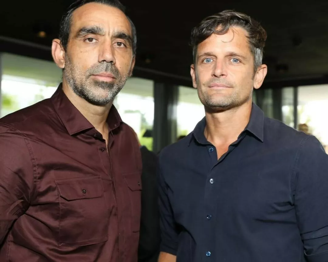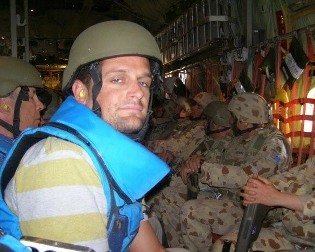 Ben has written several books and has also been embedded with the Australian Defence Force in East Timor and Iraq (left). He is also pictured here with Adam Goodes (right) at a media event in Hobart.