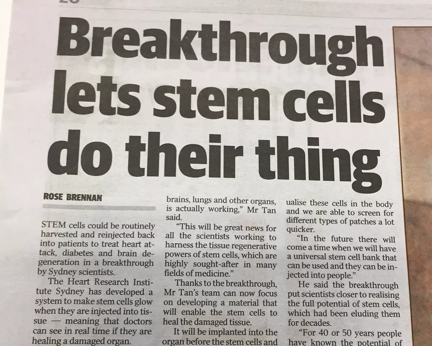 Richard Tan from the Heart Research Institute in Sydney has developed a glowing stem cell tracker model that could change the way the science community develops life-saving tissue therapies.