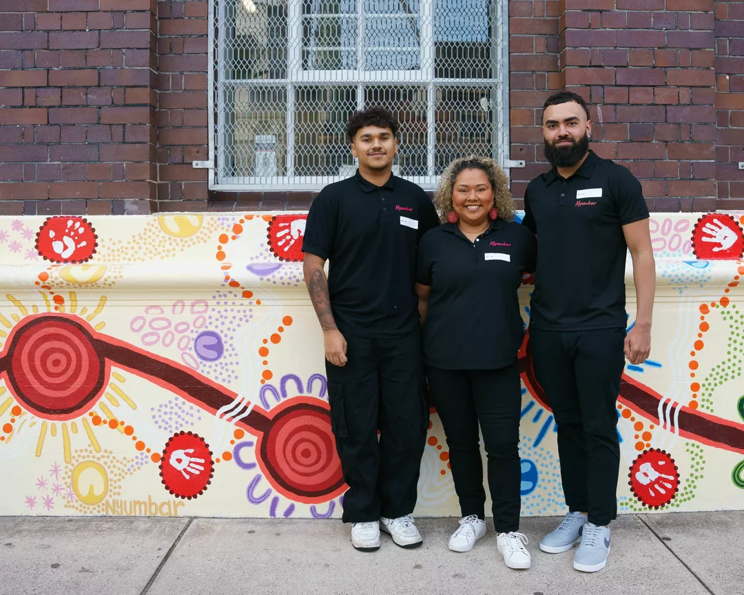 Artist Dez Marsh (centre) with her two sons, who also painted the mural and are part of Nyumbar Education.