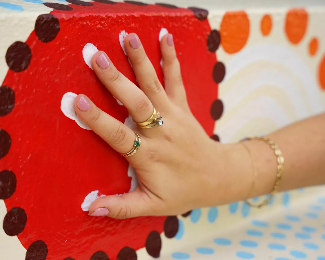 The idea for the mural originated from a conversation between HRI’s Director of Human Resources, Elissa Dwyer, and Uncle Boe, highlighting the importance of Aboriginal artwork in creating welcoming, culturally safe spaces.