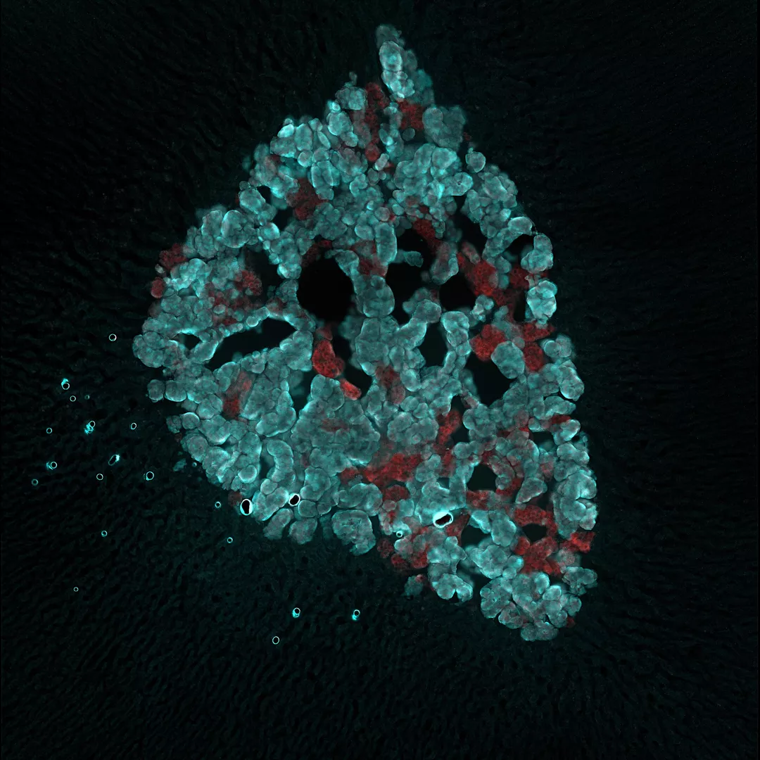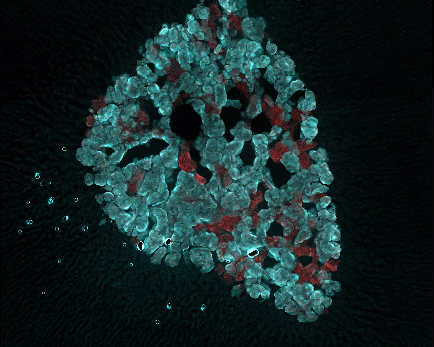 Microscope image of activation of cells in the adrenal gland following repeated hypoxia (low oxygen levels). Image provided by Zohra Kakall.